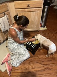 Campy had great health for much of his life. He suffered from seizures in 2015 but it was controlled with medication. Campy survived one dog attack which resulted in several stitches, but he was incredibly brave throughout that process. Over the past three years, Campy lost his sight and hearing but that didn’t slow him down. Over the past two years, he braved a hard battle with canine cognitive decline which affected his brain, often making him confused, wobbly and anxious. His brain was slowing him down but his body remained strong. He simply loved living life with us. He thrived with a routine of eating, going on walks and being kissed and held. We are grateful for our vet, Dr. Haueisen for understanding Campy’s quirks and for helping to make his vet appointments as low stress as possible. She took such great care of Campy throughout much of his life, specifically in his senior years when the vet visits became more frequent. We were honored to care for Campy in his golden years. Although he required a lot of attention and energy for his aging needs and struggles, it was our greatest gift to make sure he was comfortable for his entire life.
